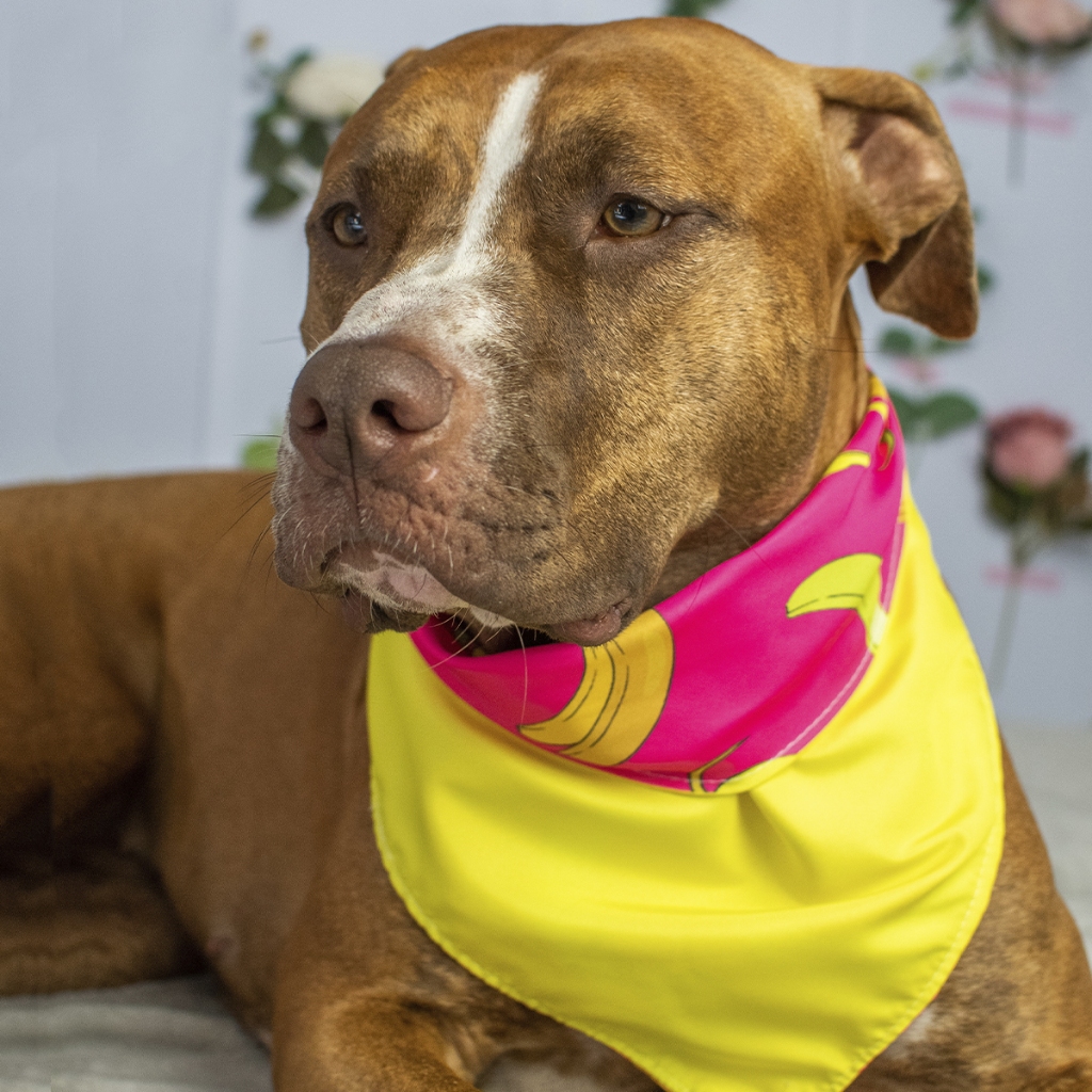 Bandana Dupla Face Pet 2 em 1 Premium Bananas Rosa e Amarelo