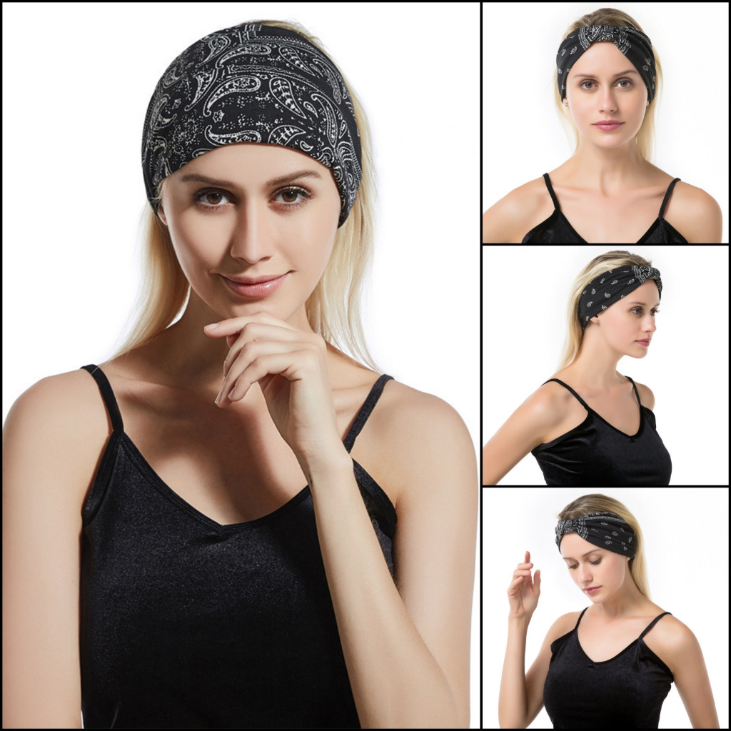 Bandana Faixa De Cabeça Turbante Larga Feminina Padrão Paisley Para Elástica Esportes Yoga Tiara Elegante