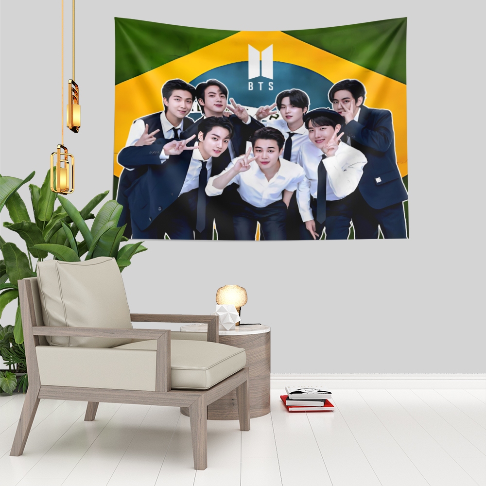 Bandeira Decorativa Tecido De Parede Pano Estampado Banner Decoração De Parede BTS Brasil Kpop Fan