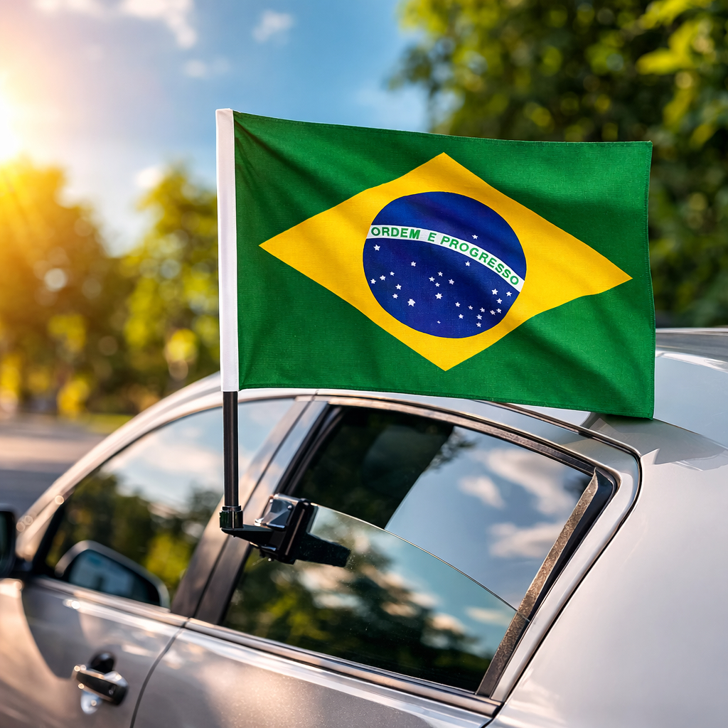 Bandeira do Brasil 45x30cm com Haste Vidro Carro Copa do Mundo Torcida Manifestação