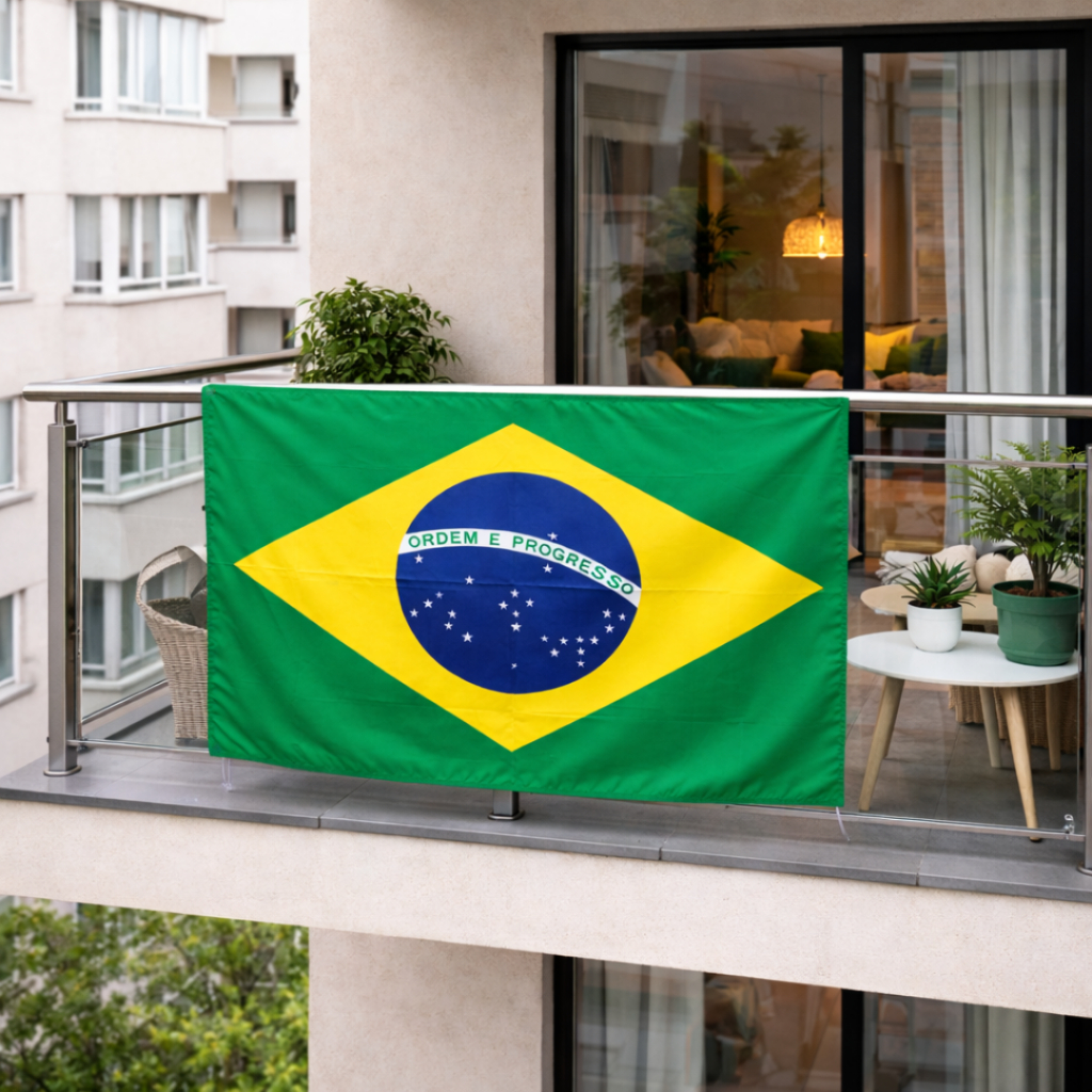 Bandeira do Brasil no tamanho de 1,50 m x 1,00 m, ideal para quem deseja visibilidade e impacto. Confeccionada em tecido cetim, leve, resistente, com cores intensas e acabamento de qualidade, proporcionando ótimo visual. Indicada para sacadas, varandas, eventos esportivos, comemorações, escolas e estabelecimentos comerciais. Perfeita para utilizar em jogos, datas patrióticas, celebrações e demonstrações de apoio à seleção brasileira. Material leve, de secagem rápida, fácil de dobrar e armazenar, facilitando o transporte e o uso no dia a dia. Conta com compartimento lateral para encaixe de bastão, permitindo diferentes formas de exibição.