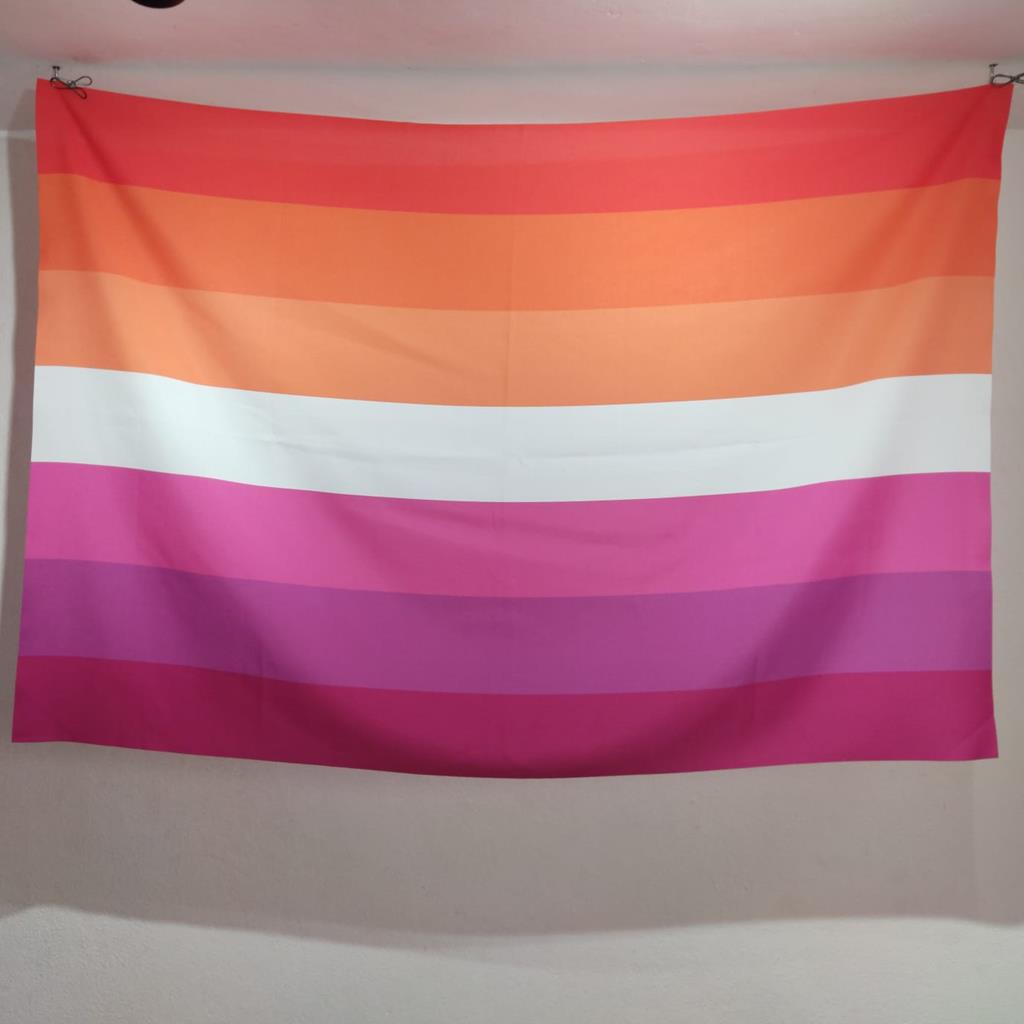 Bem vindos Este e o anuncio da nossa maravilhosa, grande e IMPECAVEL bandeira orgulho Lesbico sublimada a laser. Alta qualidade e com cores fieis que irao deixar seu ambiente ainda mais vivo. Ideal para eventos, decoracao, restaurantes e bares, manifestacoes e passeatas, entre outros. Medidas aproximadas: 1,50m x 1,00m Tecido: Oxford Pode ser passada com ferro. Reproduzida em cores vivas e vibrantes. Nao e dupla face Pronta entrega. Obrigado pela visualizacao do anuncio e aguardamos sua compra. Perguntas e respostas