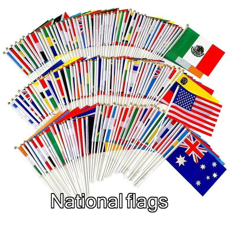 Bandeiras de países ao redor do mundo, decoração de Dia Nacional, pequena bandeira de mão, Brasil, Espanha, Chile, Franç