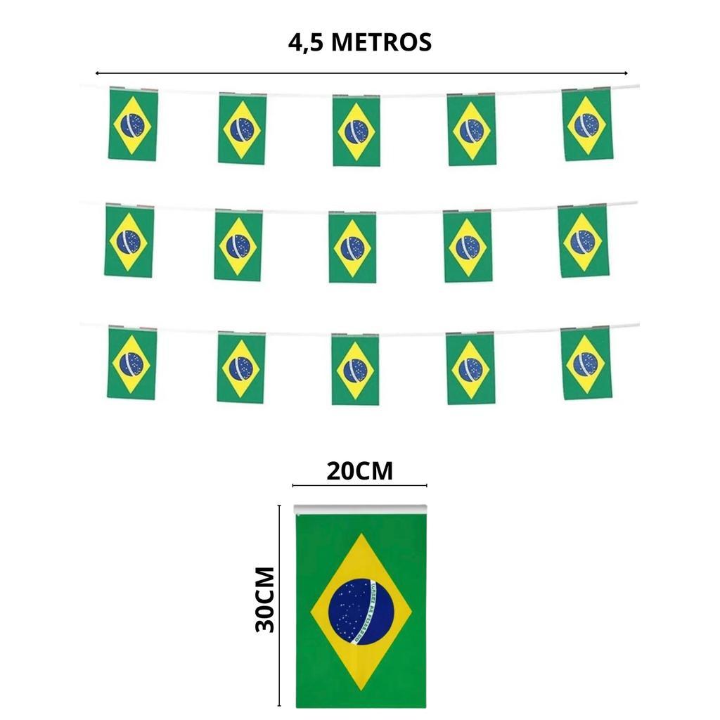 Bandeirolas Brasil 4 metros + 2 Cortina metalizada + Kit Bola e Estrela Copa do Mundo Bandeira decoracao
