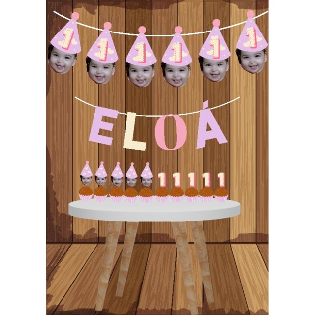 Bandeirolas Personalizadas com Rostinho + Nome + 20 Toppers para Doces - Kit Completo