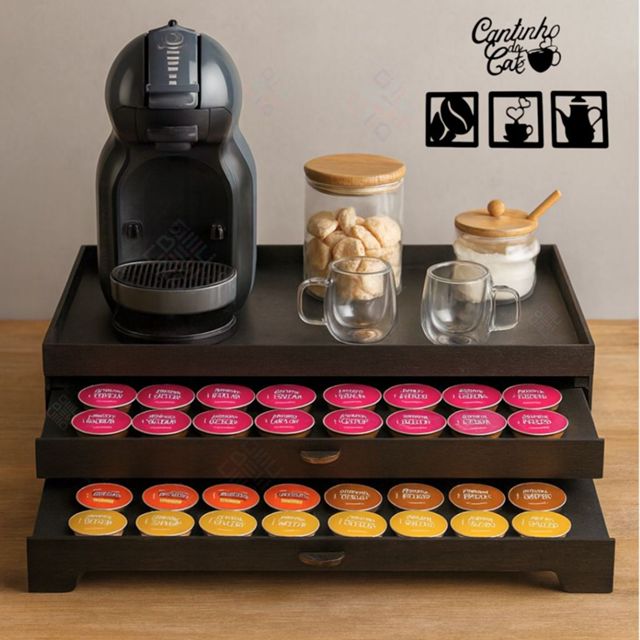 Bandeja 80 Cápsulas Cantinho do Cafe 2 Gavetas Porta Capsulas Mdf Decoração Escritorio Apoio Servir