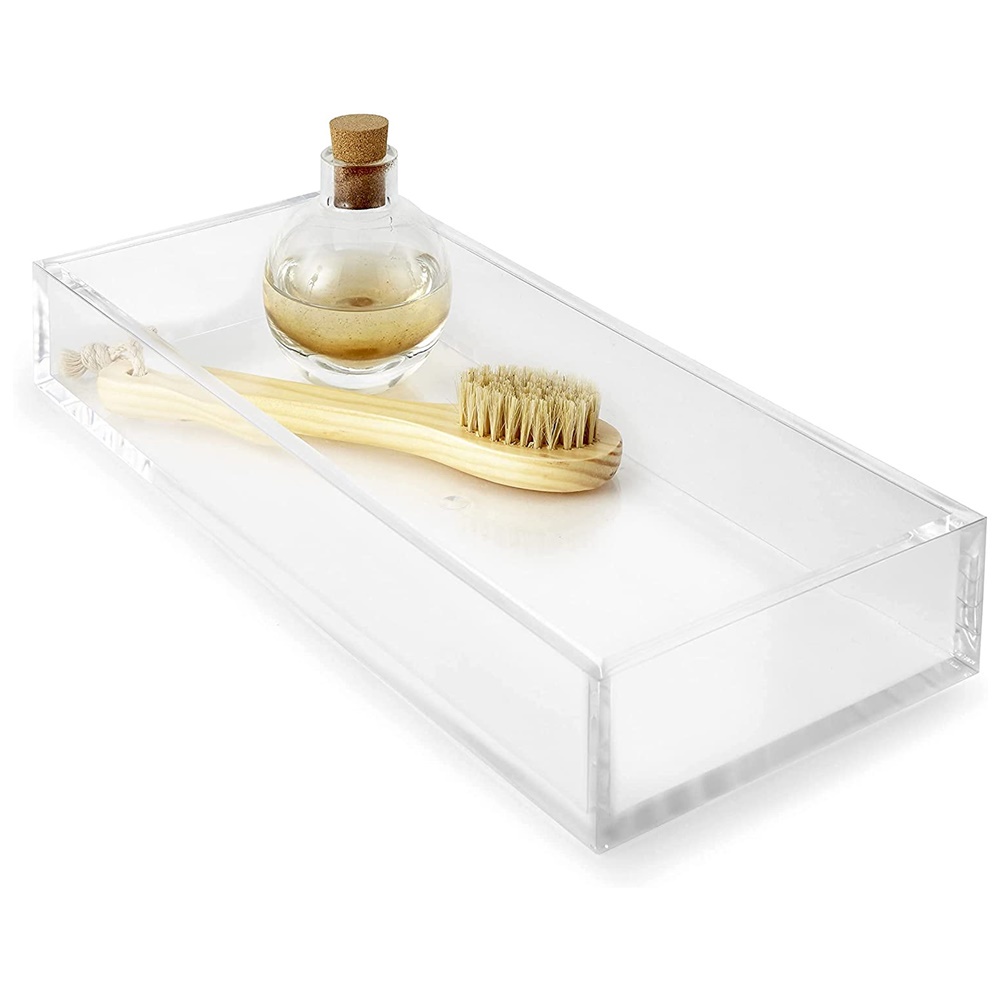 Bandeja de acrílico decorativa em acrílico. Pode ser usada em qualquer ambiente, desde seu escritório pra organizar seus acessórios e objetos, seu quarto pra organizar suas maquiagens, pincel, batom, lápis, etc e até sua cozinha para poder organizar seus talheres, você pode usar no ambiente que você quiser. É uma caixinha linda e muito bem feita. Medidas: Altura: 3 centímetros. Largura: 8 centímetros. Comprimento: 20 centímetros. Material: Acrílico Cast transparente de 3 milímetros de espessura. Produto 100% virgem e com uma pureza que não deixa o produto amarelar com o tempo 100% transparente sempre.