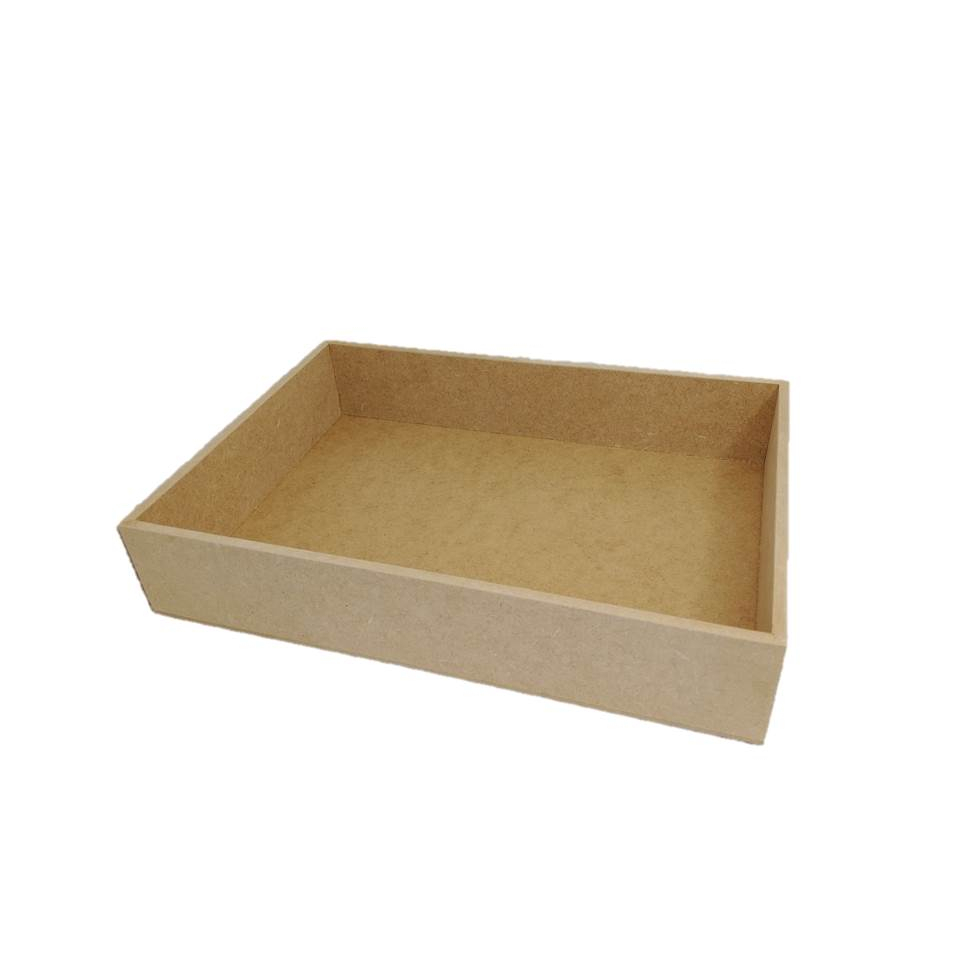 Kit compsto por 10 uniades de bandejas nas medidas internas de 25 cm comprimento x 18 cm largura x 5 cm altura Laterais em MDF cru 6 mm e fundo em MDF cru 2,8 mm Produto artesanal