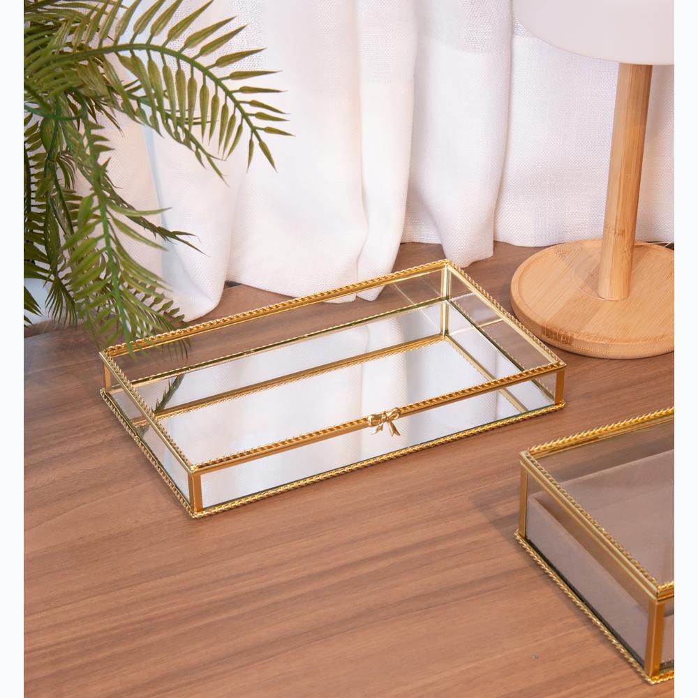 Bandeja com Espelho Mirage 14cm x 24cm x 3,5cm Dourado Metal