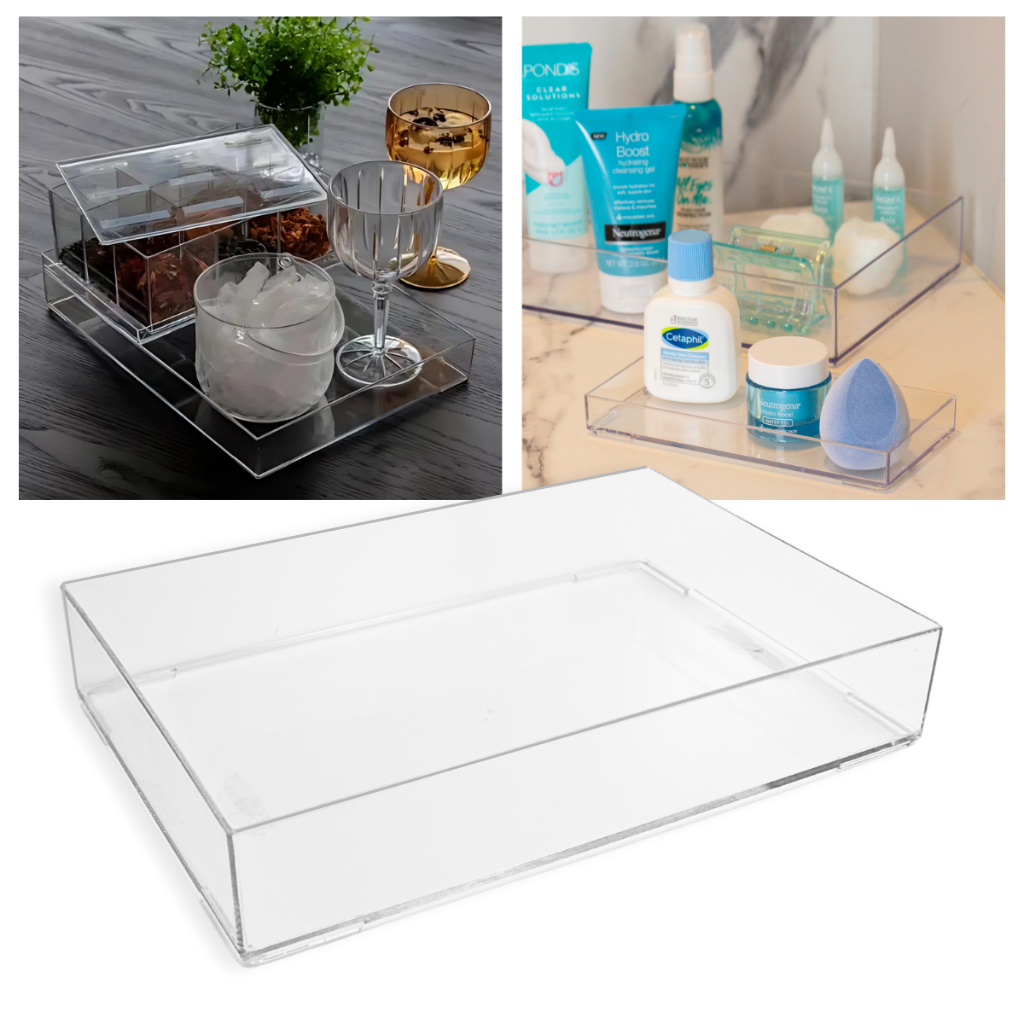 Bandeja Cristal 25x17x5cm Acrílica Decorativa Porta Cosméticos Maquiagem Penteadeira Banheiro