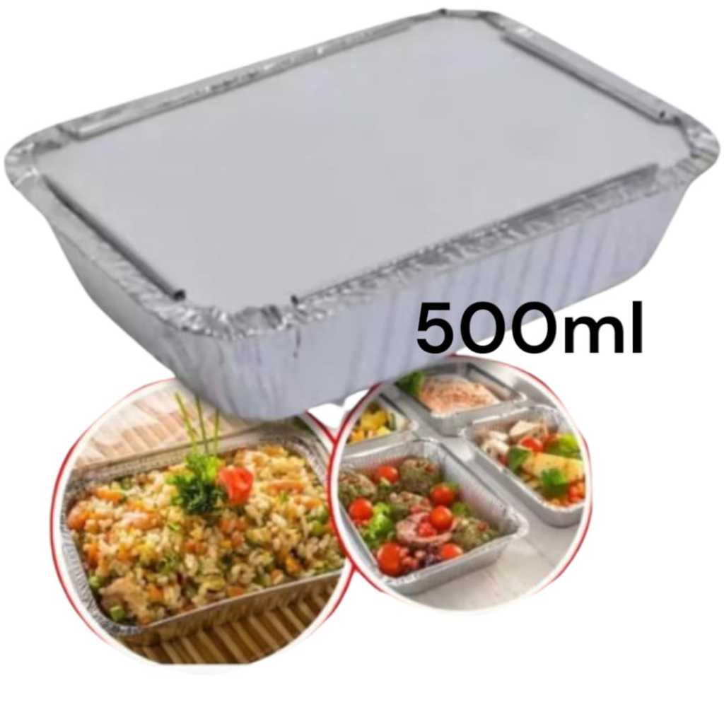 Bandeja De Aluminio Descartável 500ml Marmita Para Refeição Com Tampa