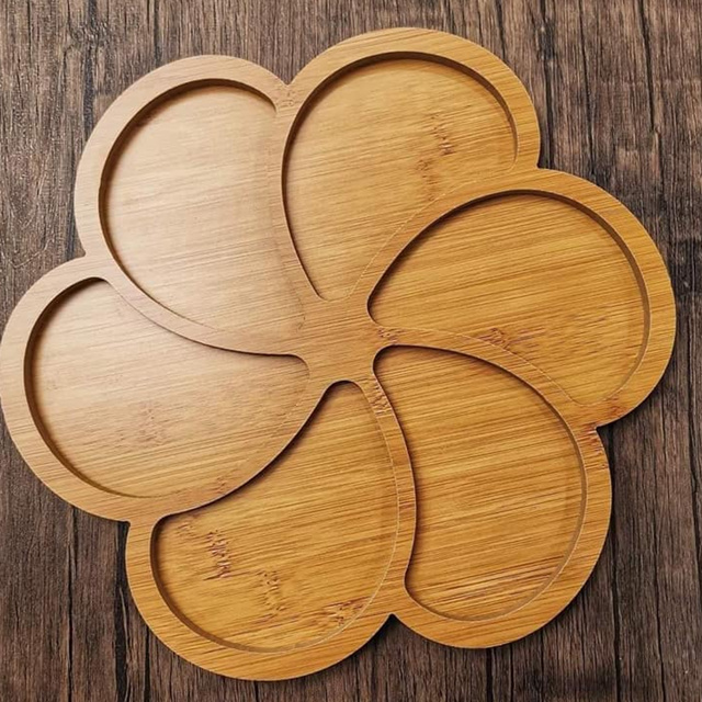 Bandeja de Bambu Petisqueira Tipo Bambu Tipo MDF Travessa formato Flor ou Redondo Gamela