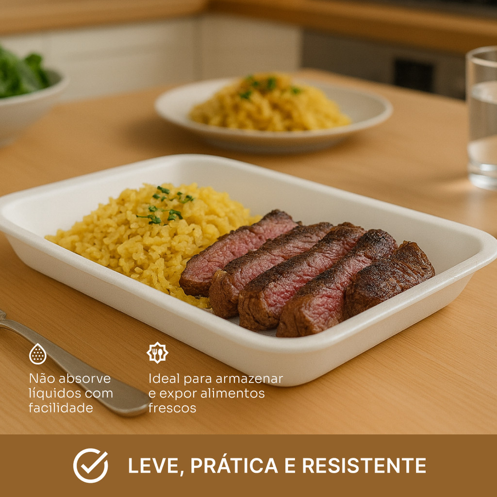 Bandeja de Isopor RASA Nº 1, 2 e 3 de Isopor Branca c/ 100un Para Padaria Para Varejão Para Açougue Distribuidor autorizado Produto testado e aprovado Envio imediato Alta durabilidade A Bandeja de Isopor Rasa é ideal para armazenar, expor e servir alimentos com higiene e praticidade no dia a dia. Leve, resistente e versátil, é perfeita para padarias, açougues, varejões, lanchonetes e uso doméstico. Aplicações comuns: - Padarias e confeitarias - Açougues e mercearias - Hortifrutis e varejões - Lanches, porções e refeições rápidas - Uso doméstico no preparo e separação dos alimentos Especificações: - Material: Isopor (EPS) branco - Modelos disponíveis: Nº 1 / Nº 2 / Nº 3 - Quantidade: Pacote com 100 unidades - Formato: Rasa (ideal para exposição e organização de alimentos) - Uso: Comercial e doméstico - Cor: Branco tradicional Características: ✅ Leve, prática e resistente ✅ Ideal para armazenar e expor alimentos frescos ✅ Ajuda a manter a higiene no manuseio ✅ Perfeita para carnes, frios, frutas, legumes, doces e lanches ✅ Serve como “pratinho” descartável em refeições rápidas ✅ Não absorve líquidos com facilidade ✅ Excelente custo-benefício para estabelecimentos comerciais FAQ: Posso usar como prato descartável? Sim! A bandeja serve perfeitamente para refeições rápidas, lanches, doces e porções. Suporta alimentos quentes? Sim, alimentos mornos podem ser colocados. Evite apenas calor extremo ou forno. É boa para armazenar carne e frango? Sim! É muito utilizada em açougues e mercados para organizar e embalar carnes. Posso usar para frutas e verduras? Sim, é ideal para exposição e separação de hortifrúti. As bandejas vêm encaixadas ou soltas? Elas vêm encaixadas em bloco dentro do pacote com 100 unidades. Em caso de dúvidas, envie uma mensagem pelo chat. Estamos prontos para te ajudar!