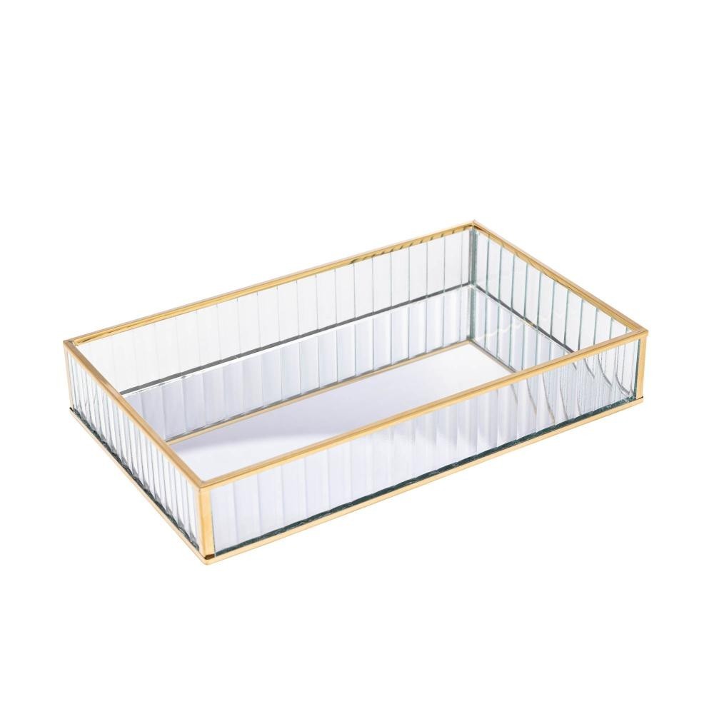 Bandeja de Metal com Espelho Dourada 15cm x 25cm x 4cm - Lyor