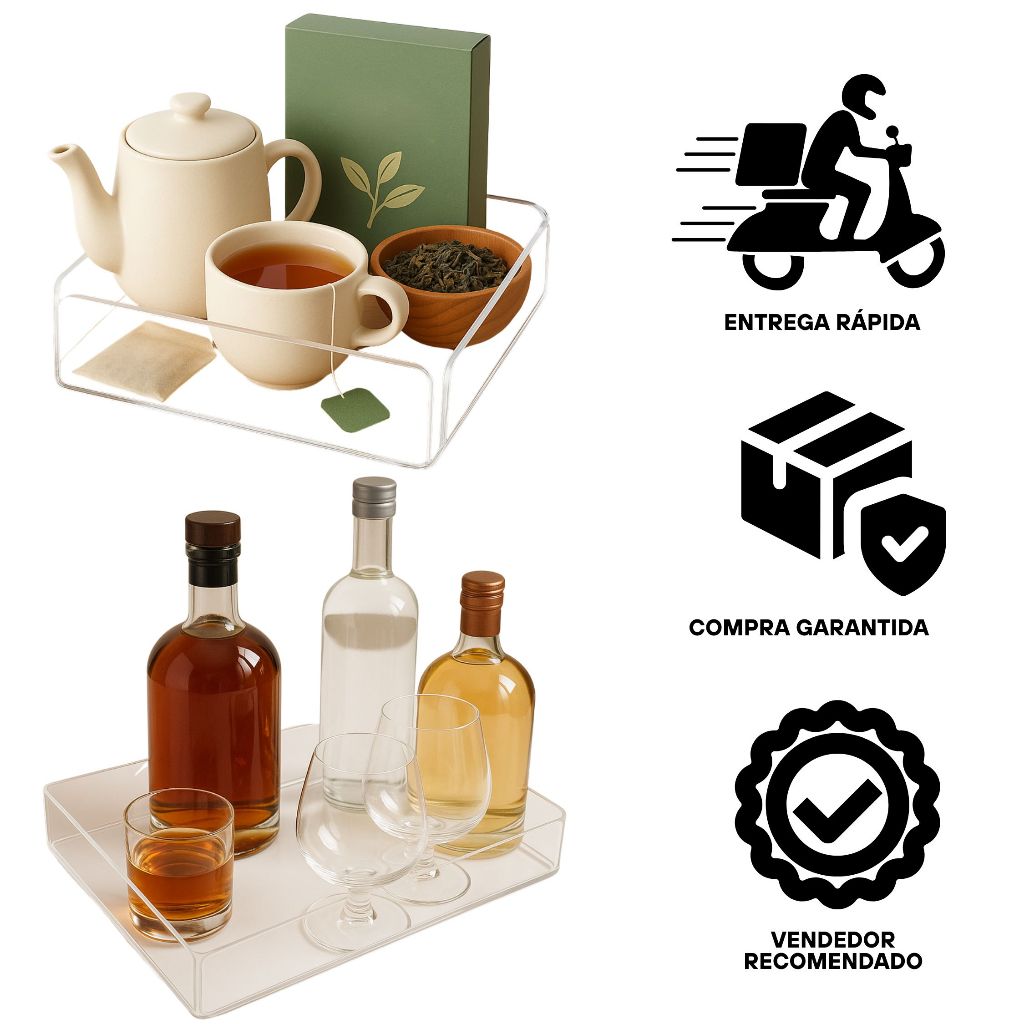 | Bandeja Acrílico Cristal para Penteadeira Banheiro Mesa 25 x 17 x 2... | R$ 25,90 | 30% | 4.9/5 | — |
