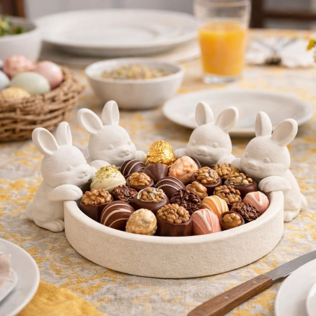 Bandeja Decorativa com Coelhos – Bandeja Ornamental para Doces, Café e Cantinho do chá, Presente Criativo, Mesa Posta
