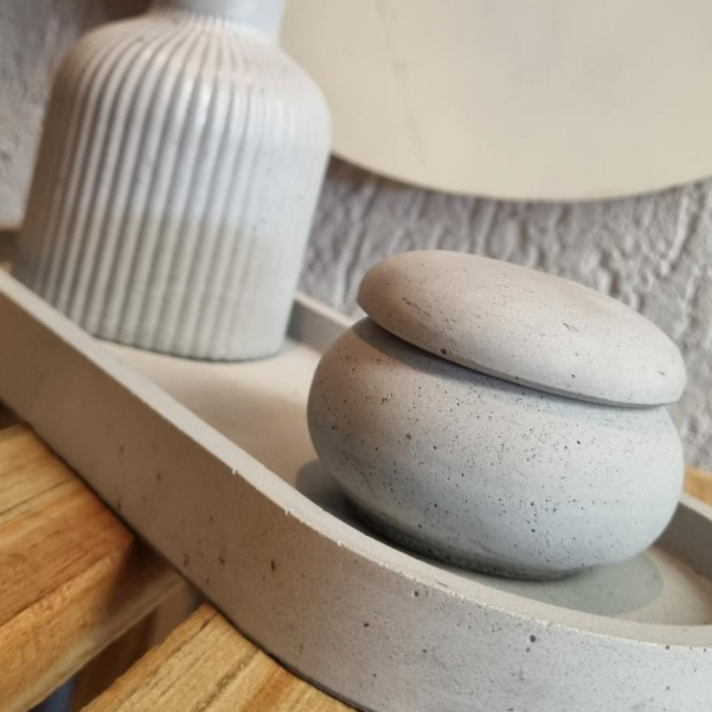 Medidas: 24 x 10 x 2 cm Por que escolher a nossa Bandeja de Concreto Artesanal? Design Exclusivo: Feita à mão por artesãos talentosos, cada bandeja é uma peça única, com texturas e acabamentos que a tornam especial. Não há duas iguais, garantindo que você tenha um item exclusivo em seu lar. Versatilidade: Perfeita para diversos usos! Pode servir como centro de mesa, organizador de objetos, ou até mesmo como base para velas e arranjos. Sua versatilidade se adapta a diferentes estilos de decoração, do industrial ao escandinavo, passando pelo boho e contemporâneo. Durabilidade e Qualidade: O concreto utilizado é tratado para garantir resistência e longevidade. A textura, embora robusta, é suavizada para um toque agradável ao manuseio. Resistente e sofisticada, ela pode ser usada em qualquer ambiente, seja interno ou externo. Sustentabilidade e Autenticidade: Ao escolher a nossa bandeja, você adquire um produto sustentável, produzido com materiais de alta qualidade e de maneira artesanal, respeitando o meio ambiente e incentivando o trabalho manual. Toque de Exclusividade para Seu Lar: Cada bandeja é uma peça de arte funcional que leva sofisticação e personalidade ao seu espaço. Seja para presentear alguém especial ou para renovar sua decoração, ela com certeza fará toda a diferença. Por serem pecas artesanais feitas manualmente podem conter furinhos que são derivados do concreto e marcas de lixa.