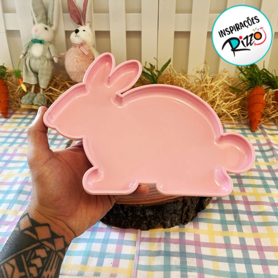 Bandeja Decorativa de Páscoa - Coelho Rosa bebê - 24cm - 1 unidade - Só Boleiras - Rizzo