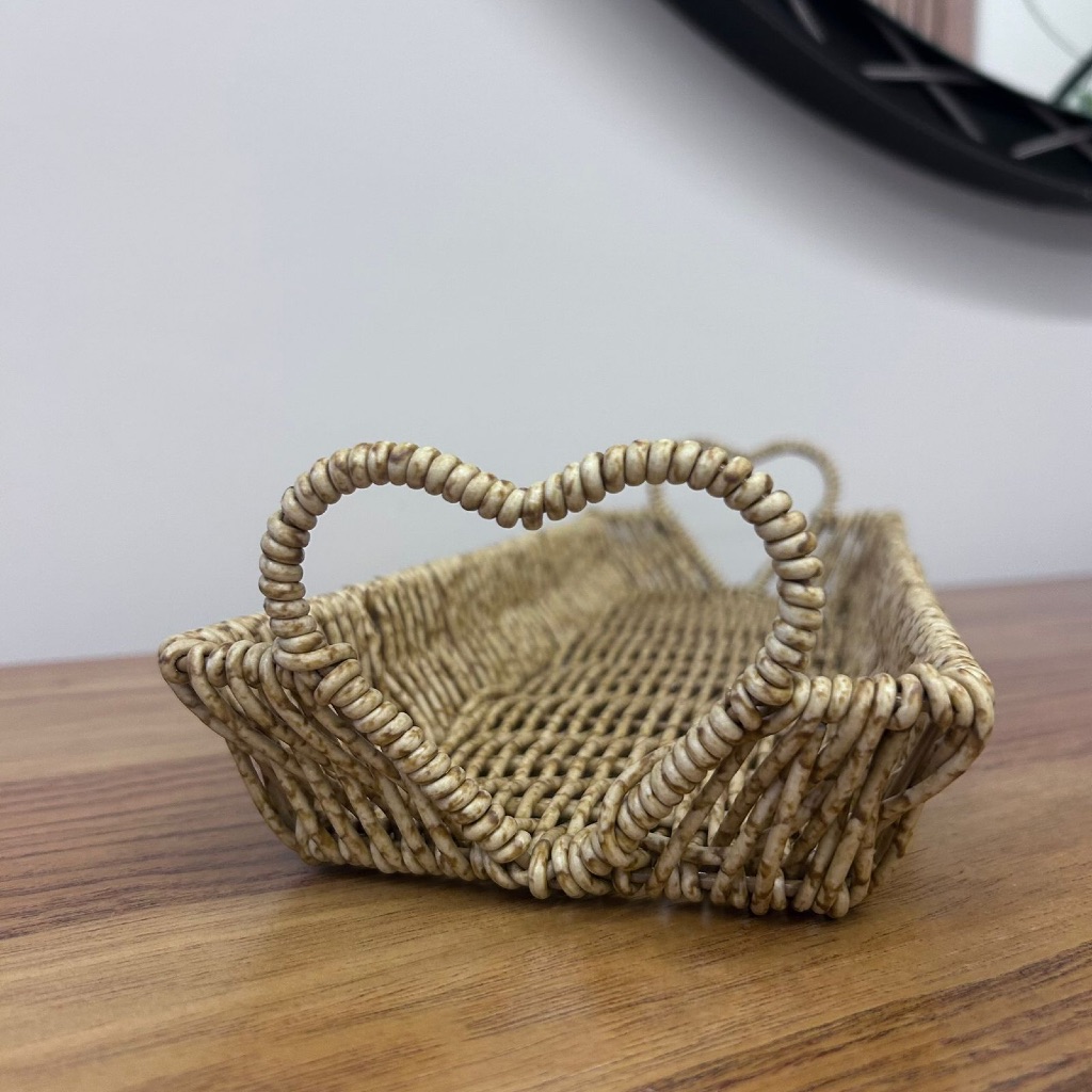 Bandeja Decorativa Multiuso com Alça Coração Rattan - Cozinha, Quarto, Banheiro