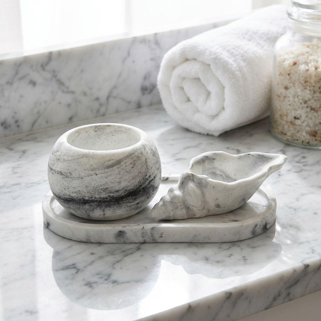 KIT 3 PEÇAS | Bandeja, Vaso e Concha Decorativa de Cimento branco estrututal Elegância Moderna que transforma seus espaços Traga sofisticação e funcionalidade para cada cômodo da sua casa com este kit decorativo exclusivo. Três peças pensadas para trabalhar juntas ou individualmente, criando composições únicas que refletem seu estilo pessoal. VERSATILIDADE SEM LIMITES Use como porta joias com design minimalista • Organize temperos e especiarias na cozinha • Guarde produtos de higiene pessoal com elegância • Decore com plantas, velas e pequenos objetos • Crie ambientes sofisticados e personalizados DESIGN EXCLUSIVO E ARTESANAL Cada peça é verdadeiramente única. Nossas bandejas, vasos e conchas trazem efeitos marmorizados exclusivos que variam em tons de preto, marrom, preto e marrom combinado, ou a sofisticação do branco puro. Escolha o estilo que melhor combina com sua personalidade e decoração. QUALIDADE SUPERIOR Fabricado em cimento estrutural resistente e impermeabilizado, este kit foi desenvolvido para durar. Combina durabilidade excepcional com a beleza artesanal que apenas peças feitas à mão conseguem alcançar. ESPECIFICAÇÕES DO KIT Bandeja retangular oval: 17 cm × 9 cm × 1 cm Vaso pequeno: 8 cm × 7,5 cm × 5 cm Concha decorativa: 12 cm × 5,5 cm × 2,5 cm MANUTENÇÃO SIMPLES Limpe com pano úmido e sabão neutro • Evite produtos abrasivos • Proteja de contato prolongado com água para preservar a beleza INFORMAÇÕES IMPORTANTES ✓ Cada peça é única – variações nos tons e desenhos marmorizados são garantia de autenticidade ✓ Pequenos furinhos e porosidade fazem parte do processo natural de cura do cimento artesanal (não são defeitos) ✓ Plantas, vasos decorativos e objetos não inclusos ✓ Perfeito para presentear quem valoriza design e qualidade
