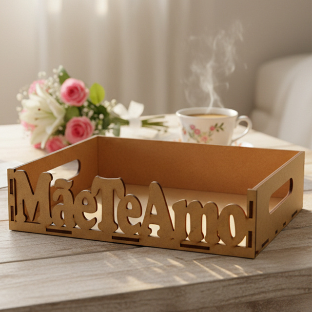 🌷 Transmita amor, carinho e gratidão em cada detalhe neste Dia das Mães! A Bandeja em MDF com corte a laser fino – “Mãe Te Amo” é o toque especial que transforma qualquer presente ou ambiente em uma verdadeira demonstração de afeto. Com design delicado e acabamento artesanal, essa peça é perfeita para montar kits afetivos, decorar ambientes ou presentear de forma elegante e cheia de significado. ✨ Características do Produto: ✅ Material: MDF cru de alta qualidade ✅ Dimensões: 30cm (C) x 20cm (L) x 7cm (A) ✅ Recorte frontal com a frase: “Mãe Te Amo”, em fonte delicada e corte fino a laser ✅ Alças laterais que facilitam o transporte ✅ Design clean, elegante e versátil ✅ Acabamento artesanal com encaixe firme e visual sofisticado 🌸 Sugestões de Uso Criativo: 🔸 Monte kits personalizados com chocolates, cafés, chás, flores, cosméticos ou itens artesanais 🔸 Sirva cafés da manhã, lanches ou sobremesas com charme e delicadeza 🔸 Decore aparadores, mesas e vitrines temáticas para o Dia das Mães 🔸 Use em fotos e vídeos promocionais para redes sociais e anúncios 🔸 Presenteie mães, clientes, colaboradoras ou pessoas especiais com algo funcional e cheio de afeto 💖 Ideal para: 🔸 Decoradores e organizadores de datas comemorativas 🔸 Artesãos e lojistas que montam kits para o Dia das Mães 🔸 Lojas de presentes, floriculturas e boutiques 🔸 Ambientes residenciais ou comerciais com decoração temática 🔸 Quem valoriza presentes com significado e reutilizáveis em outras ocasiões especiais