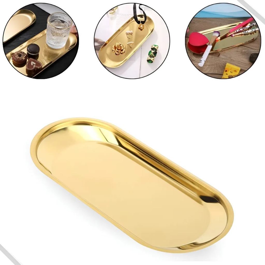 Bandeja Dourada Inoxidavel Multiuso, Lavabo, Porta Joias, Porta Seringa Decoração