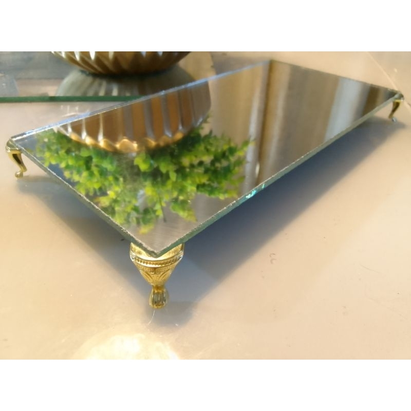 Qual o preço de Bandeja Espelhada Decorativa Pés Egípcia Metal Luxo Sala Lavabo Banheiro?