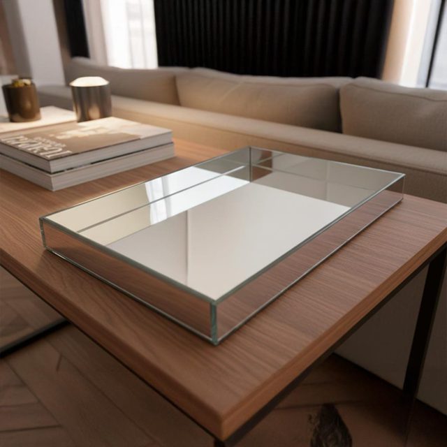 Bandeja de Mesa / Sala de Jantar / Bar / Servir. Nossa linda bandeja decorativa é perfeito para vários tipos de decoração e ambientes, E O MELHOR DE TUDO, é que ela já vai pronta pra usar e deixar seu ambiente preferido da forma que você sempre sonhou. Somos a segunda geração de uma indústria nacional que tem a qualidade como marca registrada dentro da família há mais de 30 anos. Nosso produto passa por um processo de produção industrial com matéria prima de excelente qualidade linha com objetivo de garantir não apenas a aparência de uma peça de arte mas também a resistência e durabilidade da peça. Características e especificações: Marca: Rei dos Vidros Material: Espelho 03mm Tamanhos: 30x40cm e 30x20cm Altura: 5cm Forma da bandeja: Retangular Clique no botão "Comprar" para garantir a sua bandeja decorativa ou se tiver alguma dúvida, estaremos prontos para lhe atender prontamente. GARANTIA 100% de garantia contra defeitos de fabricação em 90 dias (quebras, manchas no espelho ou falhas de montagem). PERGUNTAS FREQUENTES A entrega é segura? E se a bandeja chegar quebrada? Sim! Garantimos a entrega em perfeitas condições. Caso o produto chegue danificado, enviamos uma nova peça sem custo adicional. O espelho é resistente? Sim, utilizamos espelho de 3 mm da linha premium, ideal para uso decorativo com resistência e brilho duradouro. Precisa montar ou já vem pronta? A bandeja já vai montada e pronta para uso, é só desembalar e decorar! Clique em "Comprar" para garantir a sua bandeja espelhada agora mesmo!