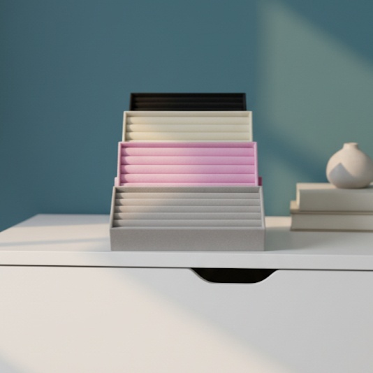 Bandeja expositora de veludo para anéis. aparece na subcategoria Organizadores de Joias (de Casa e Construção) na Shopee Brasil por R$ 23,99. Avaliado em 4.9/5 pelos compradores e 250 unidades vendidas, este produto se destaca pelo excelente custo-benefício.
