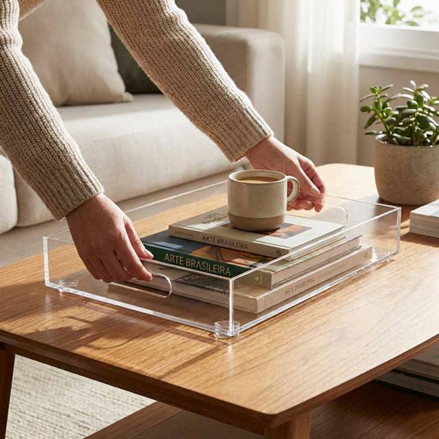 Bandeja Lisa Acrílico Cristal Decoração Alça Transparente Retangular