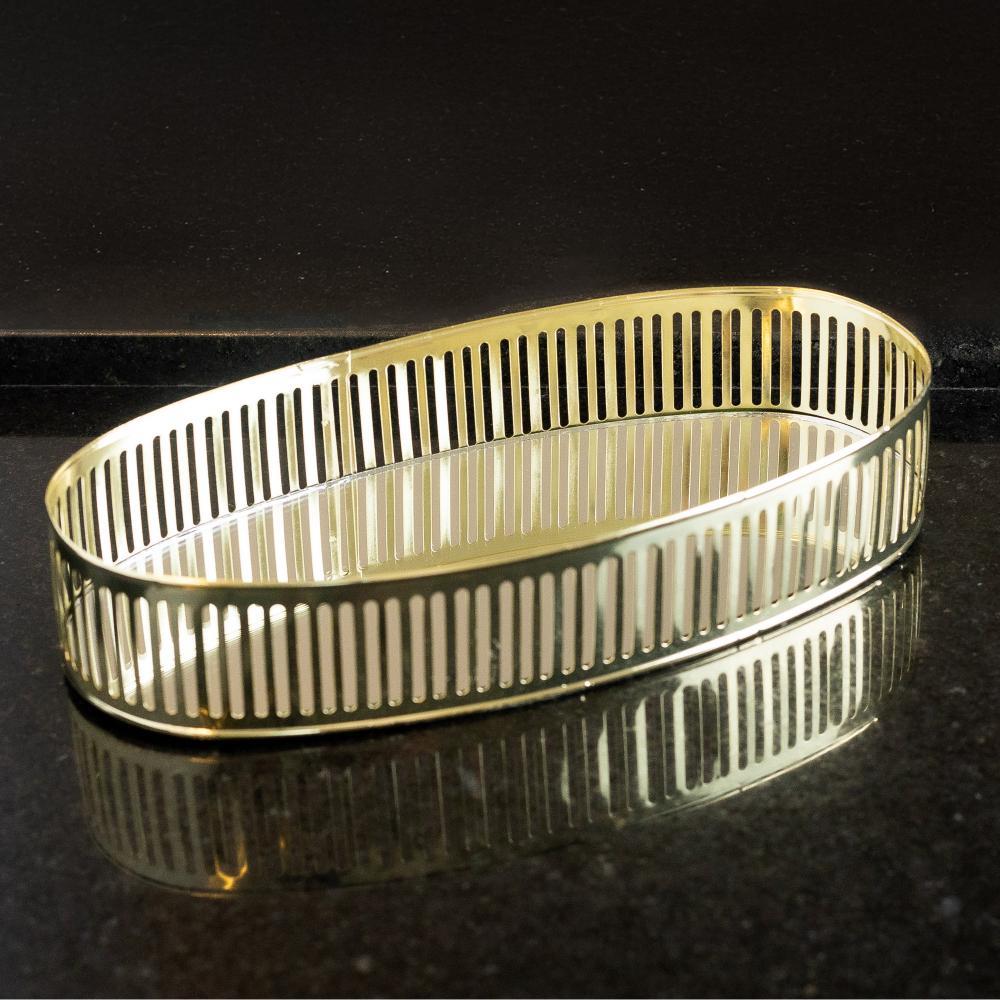 Bandeja Lyor Berlin de Metal com Espelho Dourada 26cm x 12cm