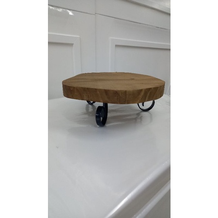 bandeja madeira decoração redonda pé de ferro