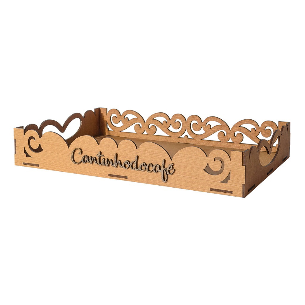 Bandeja MDF Cantinho do Café Decorativa 26x16cm Organização Xícaras Cápsulas Açúcar Nogueira Tabaco