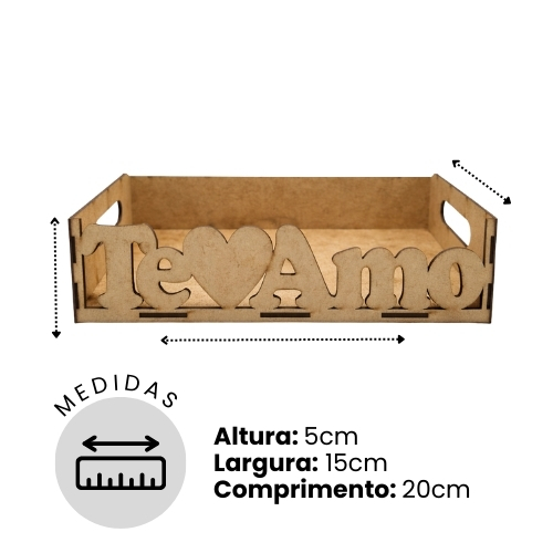 Bandeja Mdf Cru 20x15x5 Te amo com Coração Chocolate Cestas Box Organizador Multiuso Namorados Mães.