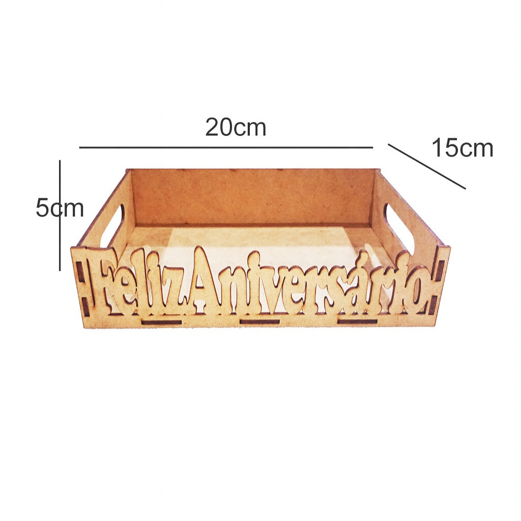 Bandeja MDF Feliz Aniversário 20x15x5cm Presente Criativo Decorativo Comemorações Aniversários