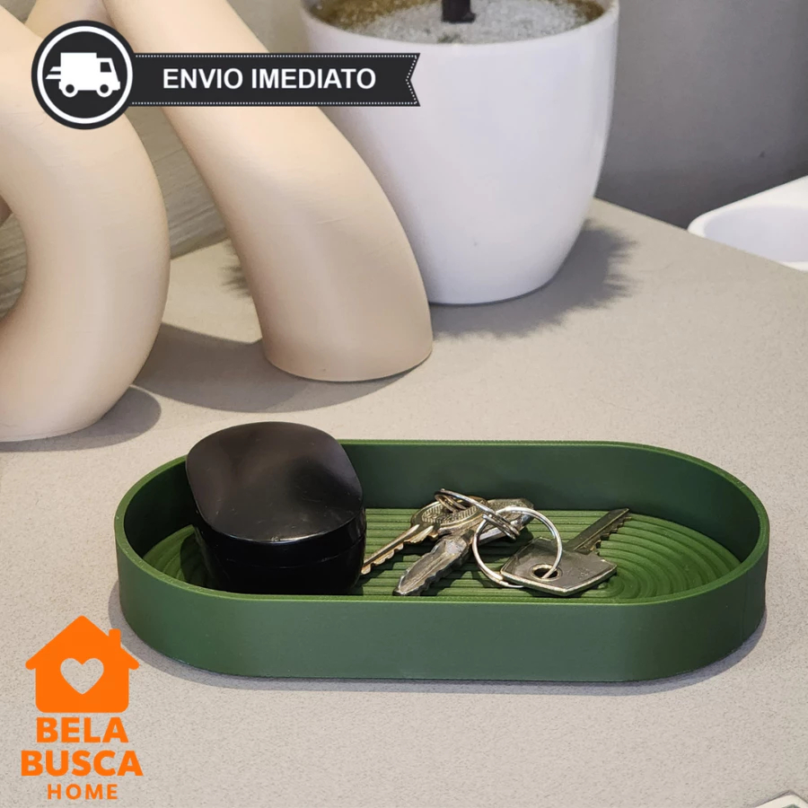Bandeja Organizadora Decorativa Minimalista – Organizador de Mesa e Banheiro, Sala Ideal para: ✨ Organizar chaves, óculos, perfumes, joias, cosméticos ✨ Decorar bancadas, mesas, prateleiras e criados-mudos ✨ Uso no quarto, banheiro, sala ou home office Dê um toque de elegância e funcionalidade ao seu ambiente com essa bandeja decorativa em estilo minimalista. Ideal para organizar e expor seus itens favoritos com praticidade e bom gosto. ✨ Versátil e funcional — perfeita para usar como porta-joias, bandeja para perfumes, chaves, maquiagens ou até mesmo como organizador de banheiro. 🌿 Design moderno, formato oval com linhas sutis e acabamento fosco que combina com diversos estilos de decoração. ♻ Material sustentável, produzida em PLA, um bioplástico ecológico derivado de fontes renováveis 🧼 Fácil de limpar — leve, resistente e de fácil manutenção, com base que não escorrega, suba base antiderrapante em Silicone 🧼 Cuidados: • Limpar com pano seco ou levemente úmido • Evite exposição prolongada ao sol 📏 Medidas: Tamanho Pequeno 15cm x 8cm x 2cm Tamanho Grande: 19cm x 12cm x 2cm ✨ Produto artesanal com pequenas marcas características da impressão 3D - Conteúdo: * 1 BANDEJA * Não acompanha itens decorativos das fotos. Apenas a bandeja.