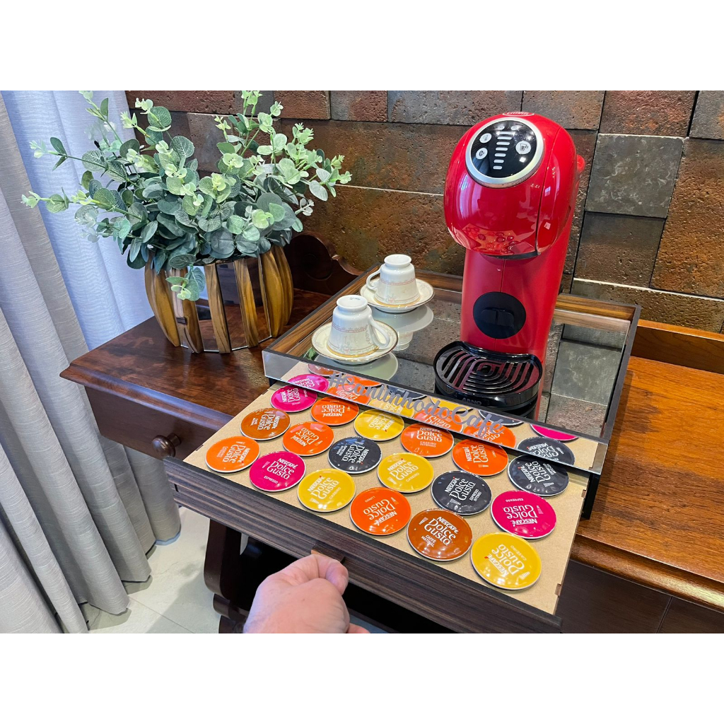Bandeja Porta Cápsulas Modelo Dolce Gusto Premium Com Vidro Espelhado Temperado Suporta Até 7KG