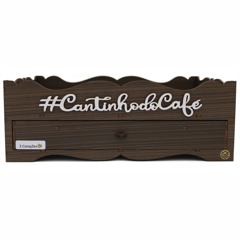 Bandeja Porta Cápsulas Três Corações Amadeirada Cantinho Do Café Mdf Decoração