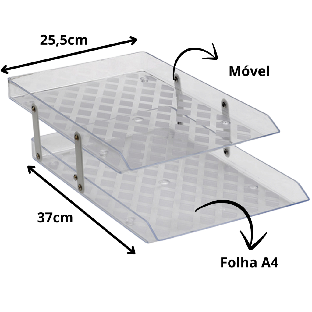 Bandeja porta Documentos organizadora de mesa Dupla Móvel Cor Cristal Maxcril