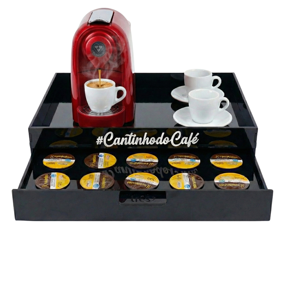 ✨ Organização e Praticidade A bandeja não só organiza suas cápsulas, mas também embeleza seu espaço de café. Evite a bagunça e mantenha suas cápsulas sempre ao alcance das mãos com um design que combina com qualquer decoração. 🖤 Bandeja Preta Elegante e Funcional Mantenha sua área de café organizada e estilosa com nossa bandeja preta sofisticada. Ela possui: Dimensões Ideais: 40 cm (largura) x 30 cm (profundidade) x 10 cm (altura) – Perfeita para acomodar suas cápsulas de maneira prática e acessível. Design Charmoso: A escrita “Cantinho do Café” adiciona um toque acolhedor e personalizado ao seu espaço. 🎨 Estilo que Combina com Você Disponível em diferentes acabamentos, o suporte se integra perfeitamente ao seu estilo pessoal e decoração. Escolha o modelo que mais te agrada e adicione um toque de personalidade ao seu espaço de café, transformando-o no centro das atenções. ✨ Acesso Rápido e Simples Cada detalhe do design foi pensado para facilitar sua vida. O suporte permite acesso rápido e fácil às suas cápsulas, tornando a escolha do sabor do seu café algo ágil e prazeroso. Sem complicações, apenas praticidade.