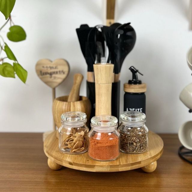 Essa bandeja redonda de bambu é perfeita para dar destaque aos seus itens na bancada, mesa posta ou cantinho do café. Com pés arredondados e acabamento natural, ela traz um toque rústico e elegante à decoração. Pode ser usada como base para potes, arranjos, velas, temperos e muito mais.