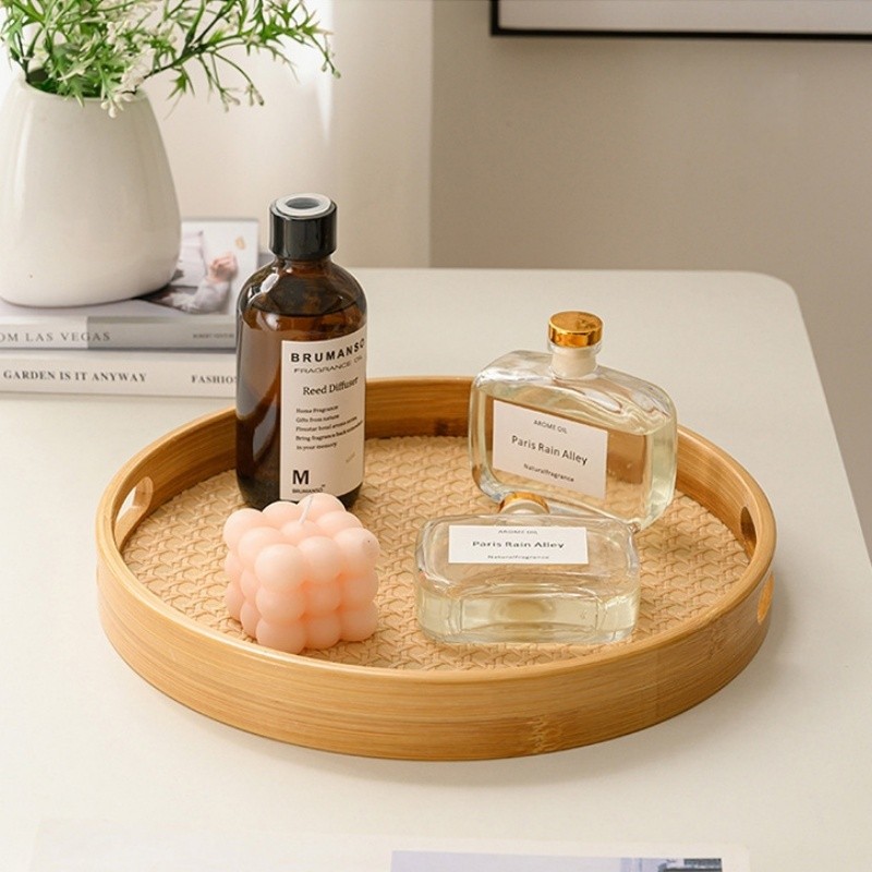 Bandeja Redonda de Bambu Japonesa para Xícaras, Sobremesas e Frutas