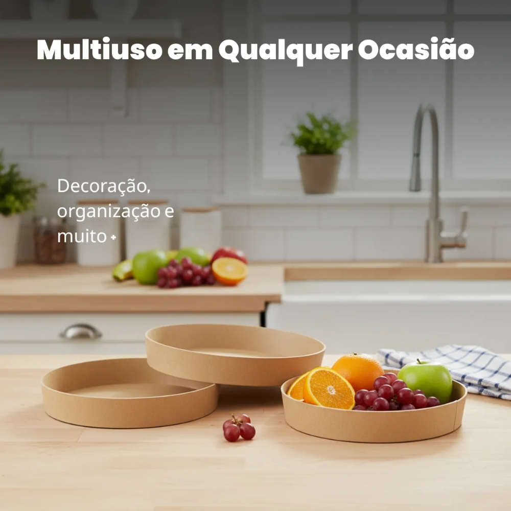 Bandeja Redonda Lisa Festa Decoração 22x3 Mdf Madeira