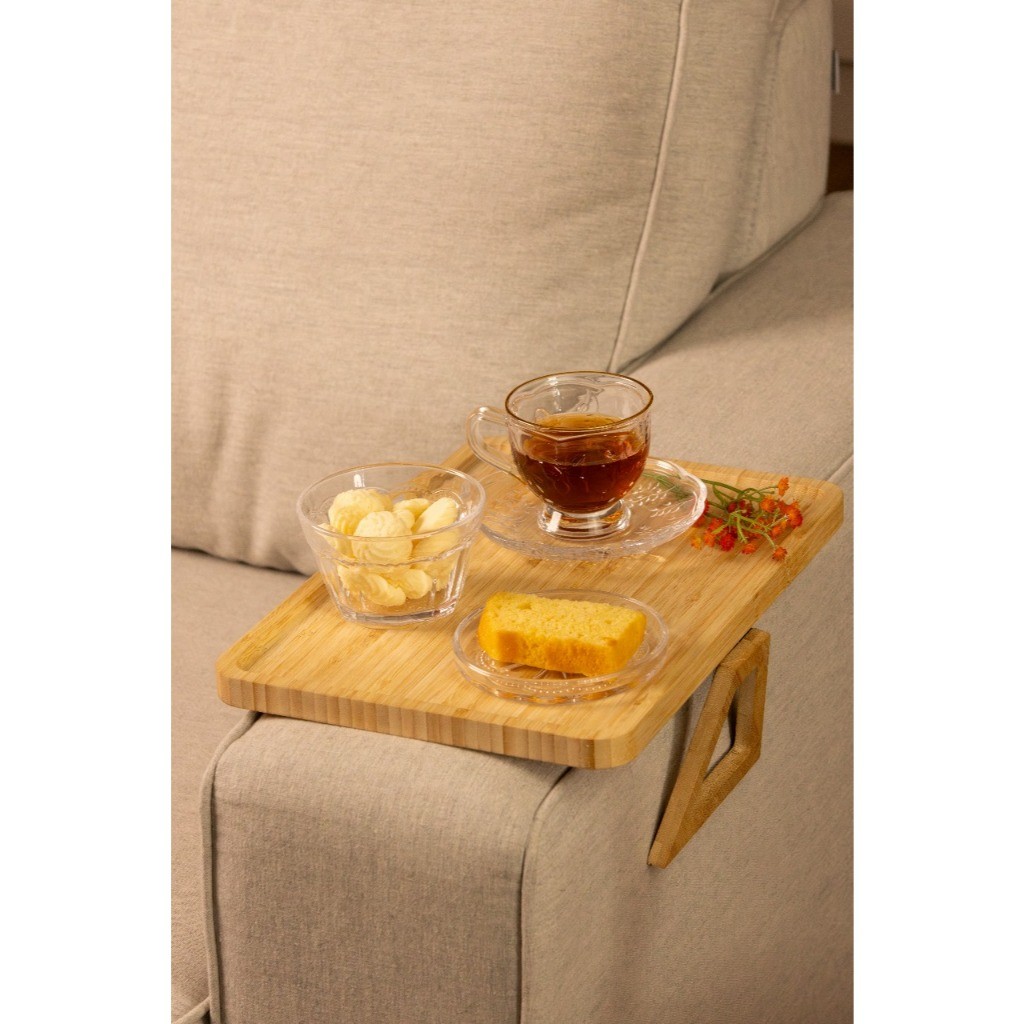 Bandeja Retangular e Redonda de Bambu Dobrável para Braço de Sofá KL-T2023