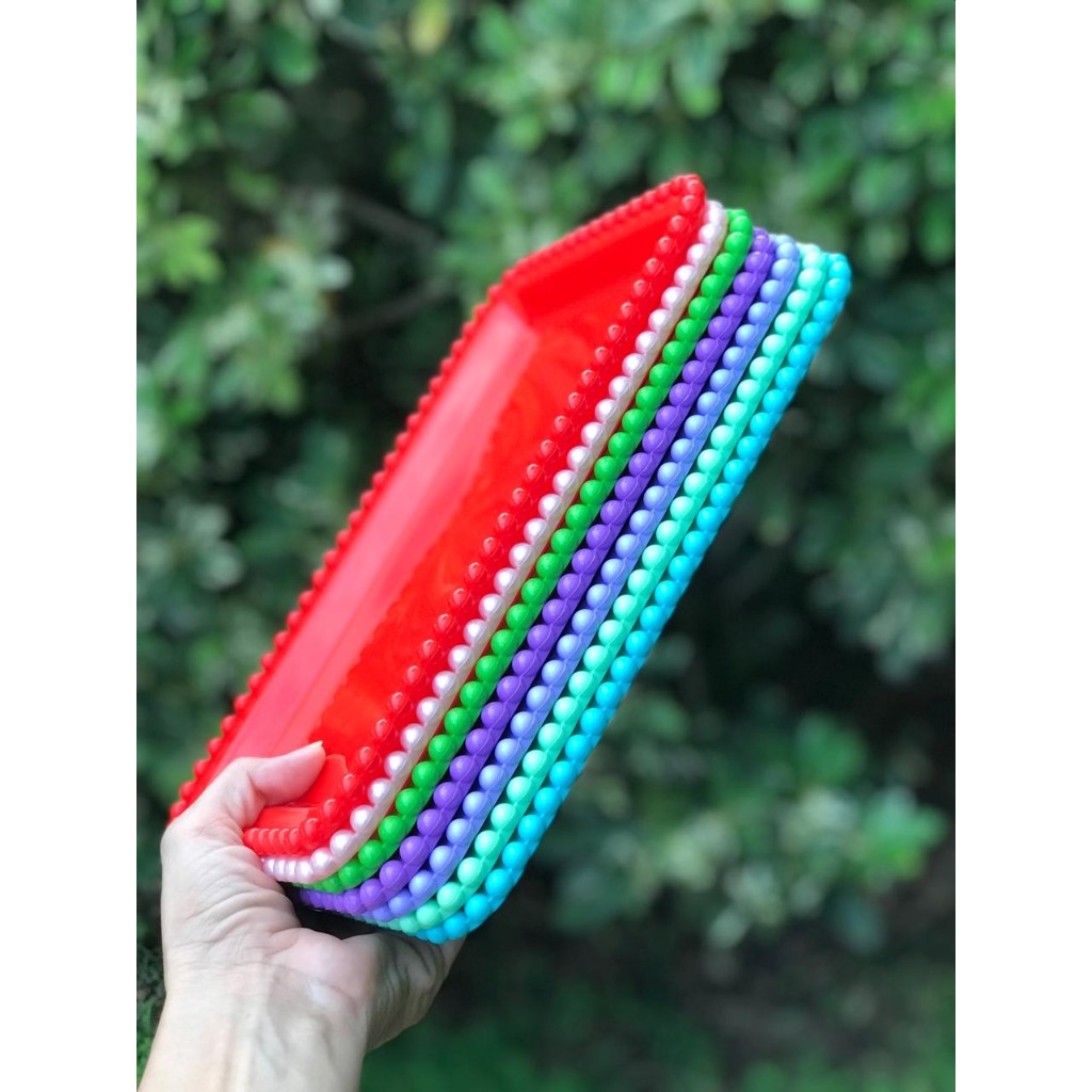 Bandeja Retangular Plástica com Bordas de Bolinhas