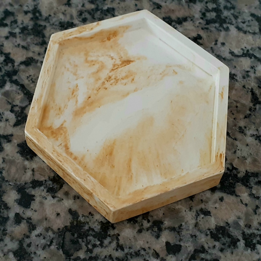 Bandeja sextavada decorativa em cimento | porta copo | pratinho para suculenta