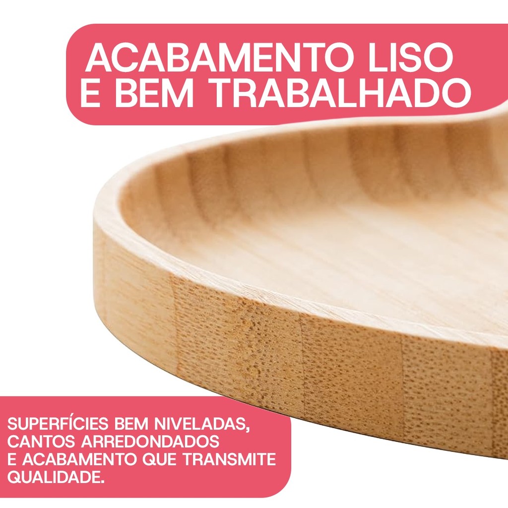 Delicada, charmosa e sustentável, a Bandeja de Bambu Coração 17cm da LYOR é ideal para quem deseja adicionar um toque de carinho e personalidade à mesa posta, cantinho do café ou decoração. Com formato de coração, essa travessa é perfeita para servir petiscos, frios, frutas, doces ou organizar pequenos objetos com estilo. Produzida em bambu natural, um material ecológico, leve e resistente, oferece durabilidade e beleza ao mesmo tempo. Seja para o uso no dia a dia ou em ocasiões especiais, essa bandeja transforma qualquer ambiente com seu design rústico e romântico, sendo também uma excelente opção para presentear. Especificações Técnicas: • Material: Bambu natural Dimensões do Produto: • Comprimento: 17 cm • Largura: 16,5 cm • Altura: 1,5 cm FAQ - Perguntas Frequentes: 1. Posso usar para servir alimentos? Sim! A bandeja é feita de bambu natural e é segura para contato com alimentos. 2. Pode ser usada para decoração? Sim, fica linda em bandejas maiores, mesas, aparadores ou no cantinho do café. 3. Pode ir à lava-louças? Não. Para maior durabilidade, recomenda-se limpeza com pano úmido e sabão neutro. 4. O bambu mancha? Com cuidados adequados, não. Evite contato prolongado com líquidos pigmentados.