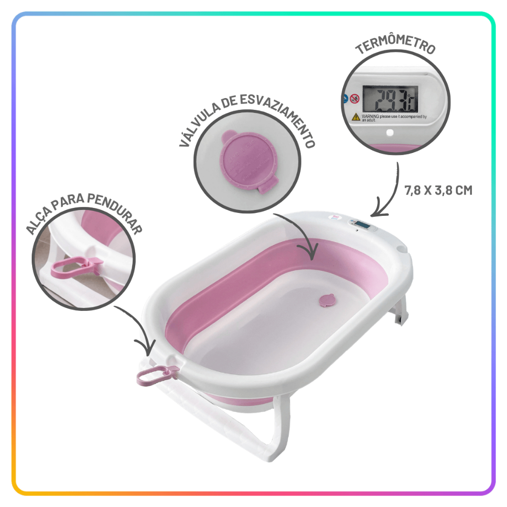 Banheira Bebê Dobrável Com Termômetro Digital Portátil e Compacta 30L + Rede de Proteção Toki Baby