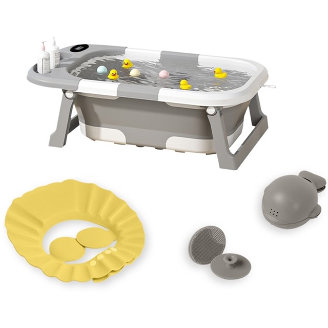 Banheira Dobrável Compacta Para Bebês Com Termômetro Cinza Yuupi