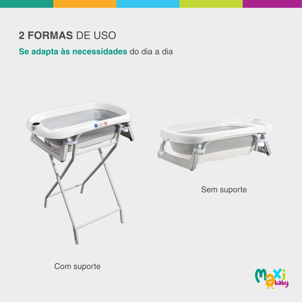 Banheira Para Bebê Dobrável C/Suporte Wish Branco Maxi Baby